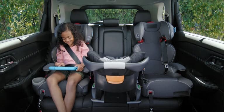 Secure LATCH-compatible child seats in any rear-seating position — rear-facing, forward-facing, or in a booster seat — even in the middle of the second row. And the butterfly-opening center console keeps the view of the rear seat open.