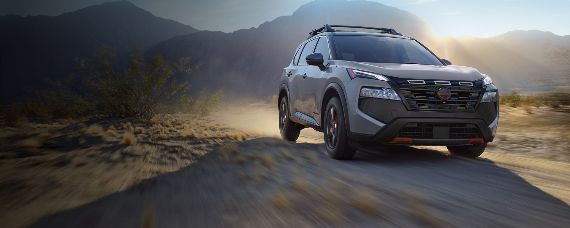 The 2025 Rogue is a midsize crossover with bold looks, advanced tech, loads of room for cargo and friends, and a big appetite for adventure. [*] Cargo and load capacity limited by weight and distribution. Always secure cargo. Heavy loading of the vehicle with cargo, especially on the roof, will affect the handling and stability of the vehicle. And with great mileage and available Intelligent All-Wheel Drive, Rogue is the answer: from your daily commute to your next road trip. [*] Intelligent All-Wheel Drive cannot prevent collisions or provide enhanced traction in all conditions. Always monitor traffic and weather conditions. [*] 2025 EPA Fuel Economy Estimates. 30 City MPG / 37 Highway MPG / 33 Combined MPG for Rogue® S and SV FWD, 28 City MPG / 35 Highway MPG / 31 Combined MPG for Rogue S and SV AWD, 27 City MPG / 32 Highway MPG / 29 Combined MPG for Rogue Rock Creek AWD, 29 City MPG / 36 Highway MPG / 32 Combined MPG for Rogue SL and Platinum FWD, 28 City MPG / 34 Highway MPG / 31 Combined MPG for Rogue SL and Platinum AWD. Actual mileage may vary with driving conditions. Use for comparison only.